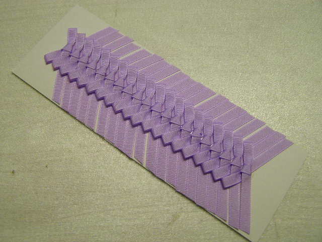 Svatební mašličky na kartě z lila taftové stuhy, šíře 0,6 cm.