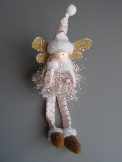 textilní anděl sedící - se třpytivou sukýnkou a špičatým kulichem - růžovýskladem 4 ks90 Kč/ ks