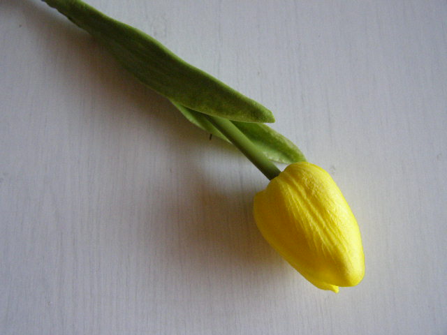 Umělý pěnový tulipán s listem. Velice věrné provedení na pohled i na omak.
