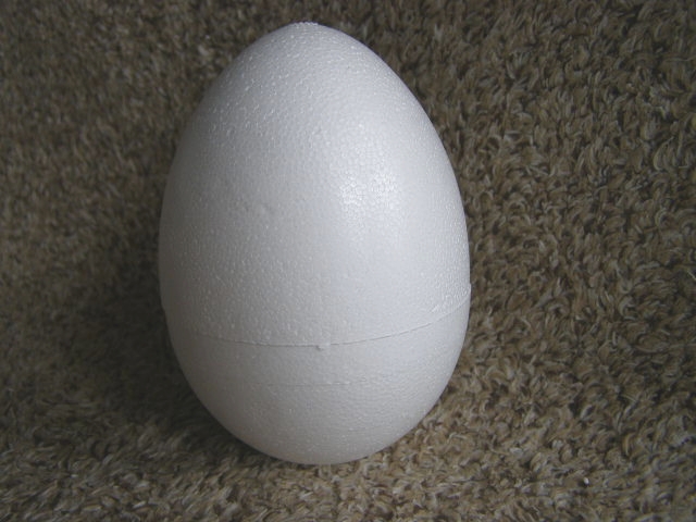 Polystyrénové vejce velikosti cca 8 x 12 cm.