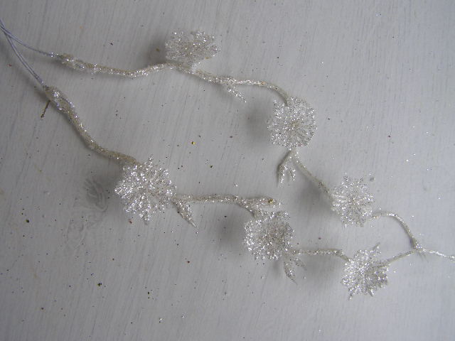 větvička s kvítky - 2 ks glitr bíláskladem 3 sv15 Kč/ sv