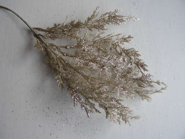 Umělá glitrová větvička v šampaň barvě.