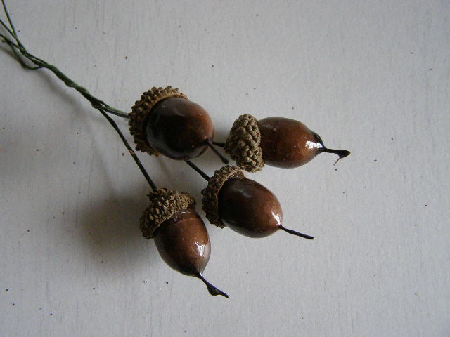 - žaludy černohnědé na drátku - 4 ks