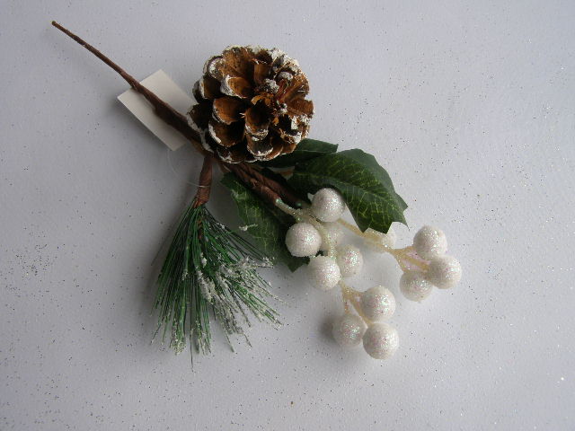 zápich - chvojí, listy, šiška,bílé bobuleskladem 9 ks35 Kč/ ks