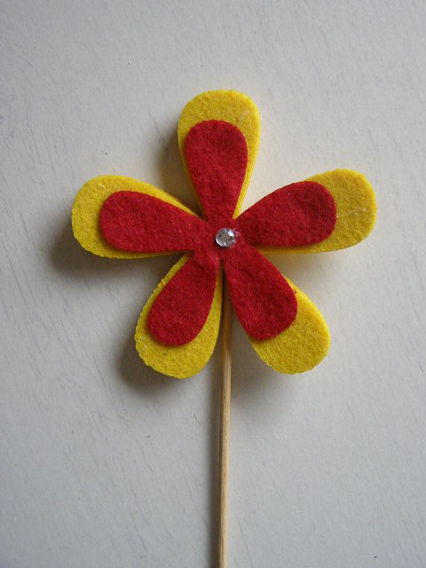 zápich - filcová kytka - žlutočervenáskladem 3 ks25 Kč/ ks