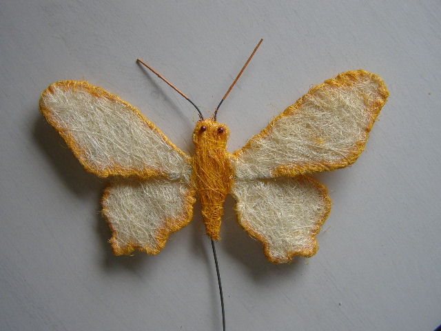Zápich - sisalový motýl. Uvnitř kovový rám.