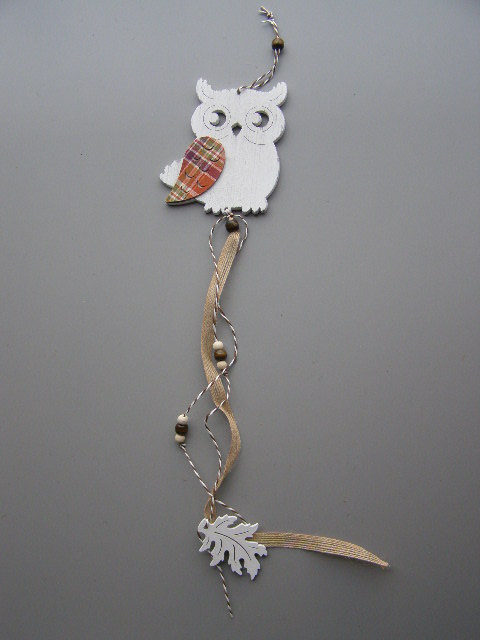 závěs dřevo - bílá sova s károvaným křídlemskladem 3 ks80 Kč/ ks