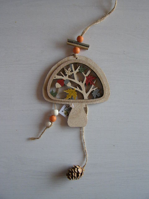 závěs vyřezávaný - podzimní houba s korálky a šiškamiskladem 12 ks56 Kč/ ks